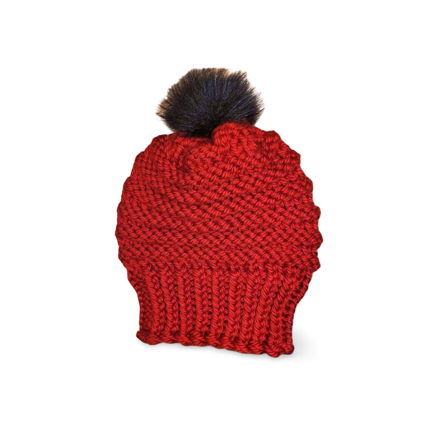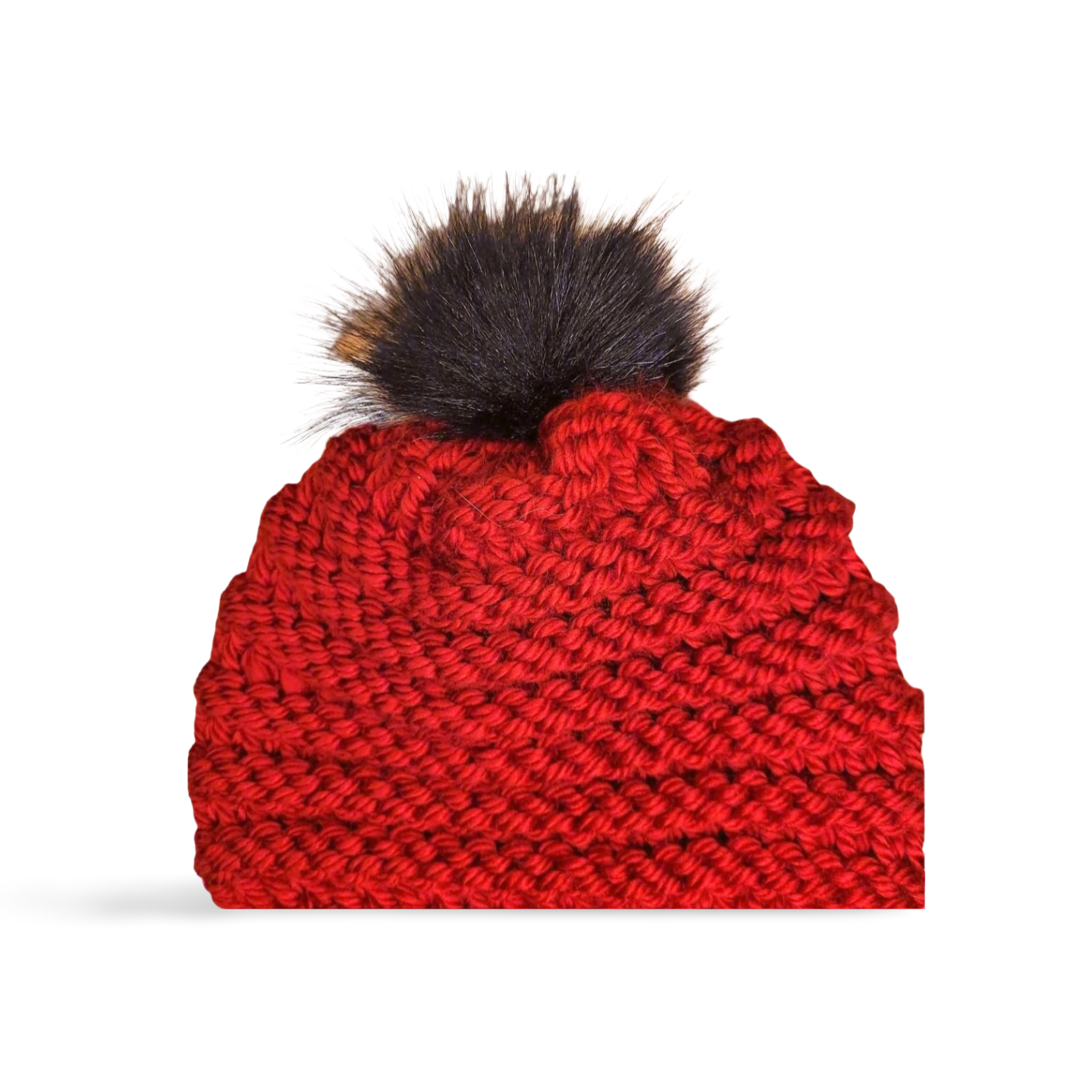 • rich red coloured beanie made using thicker yarn for comfort and warmth in cold weather