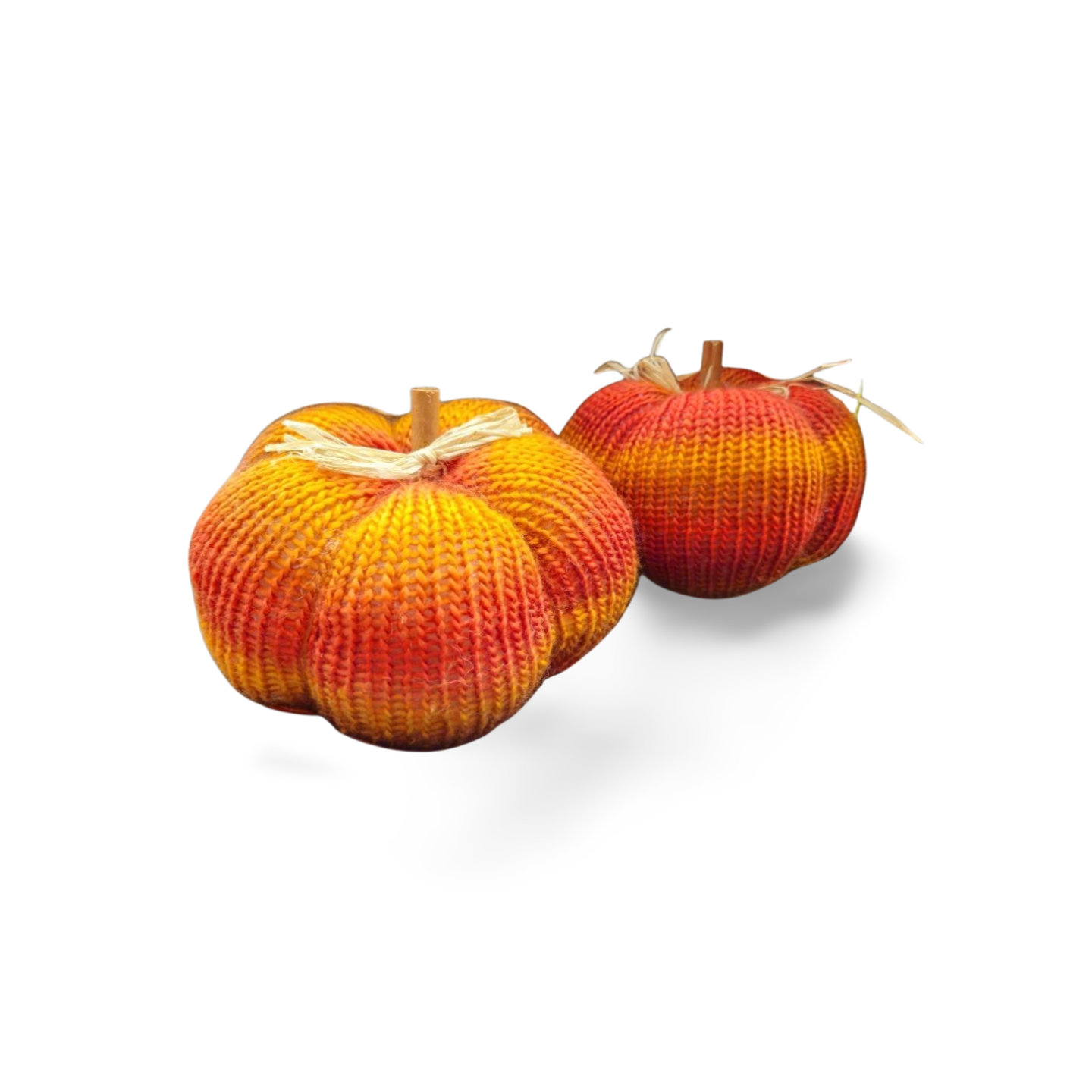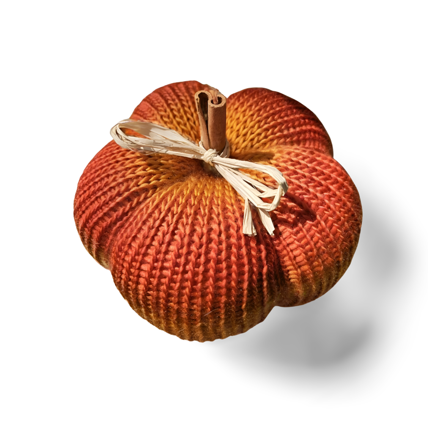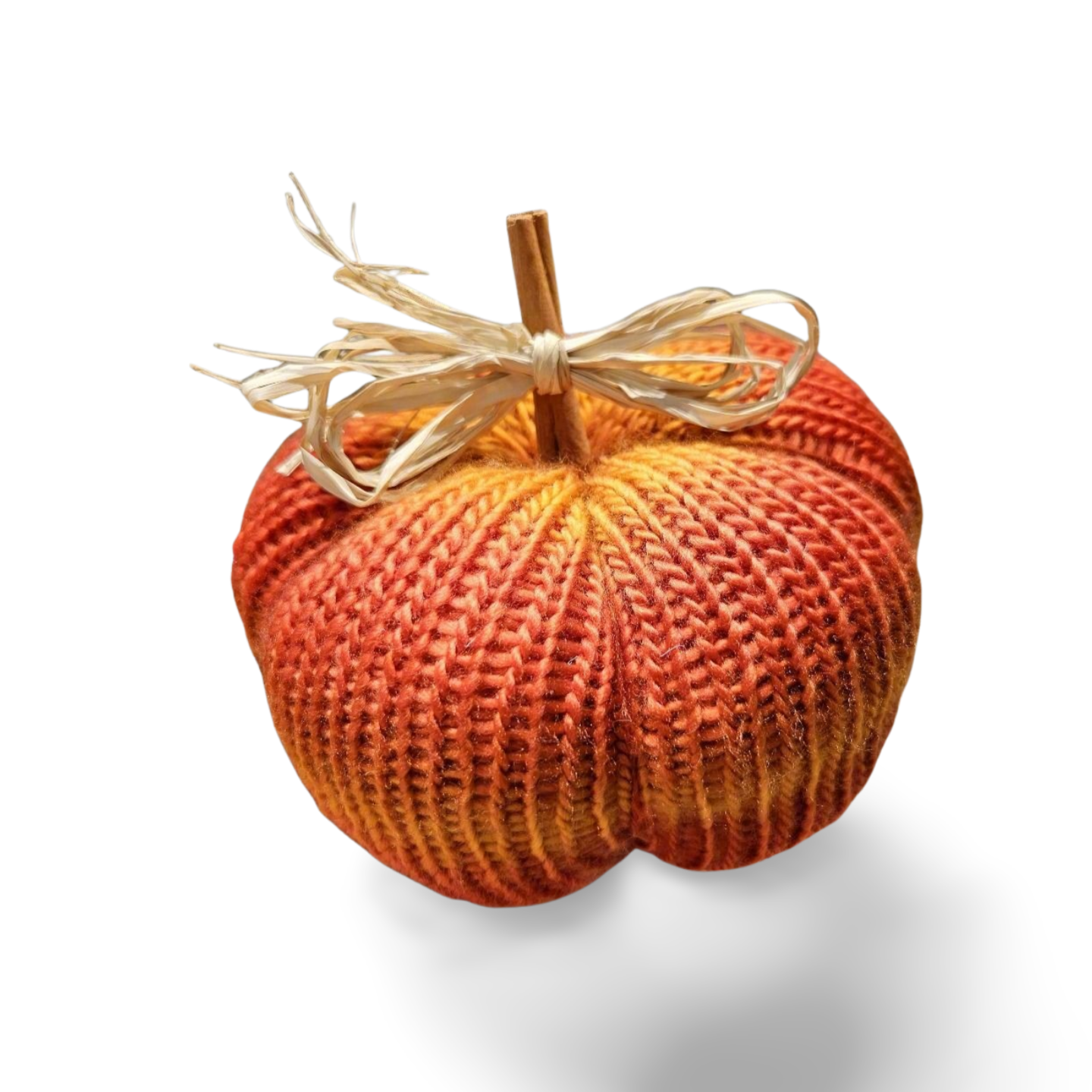 • handmade knitted pumpkins in beautiful gradient orange and yellow colours • perfect decoration for the autumn, Halloween, and Thanksgiving seasons • stuffed with soft and fluffy hypoallergenic polyester Polyfil • complete with a cinnamon stick as a stem and bow • handmade with love