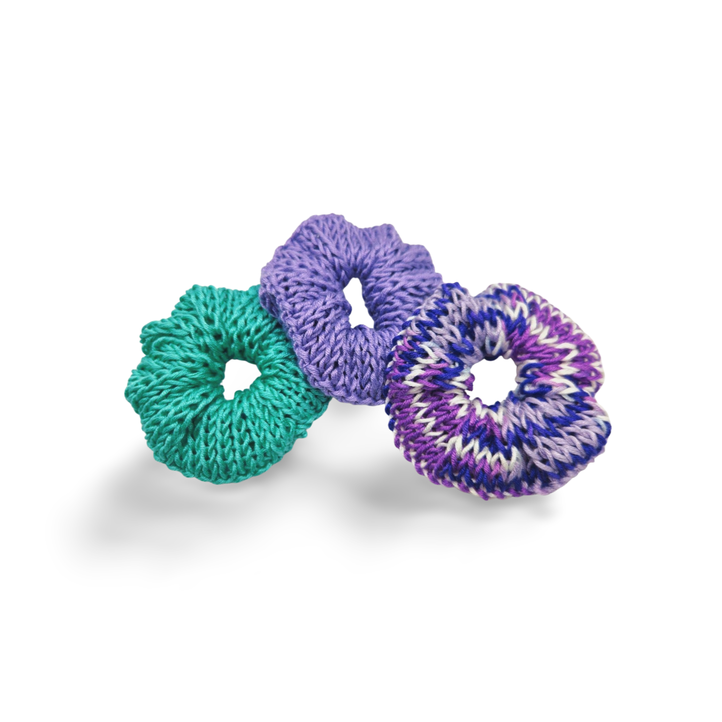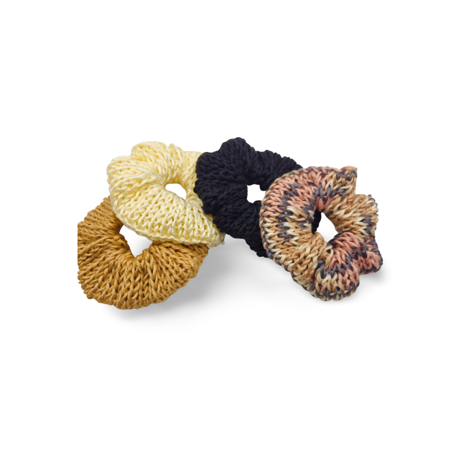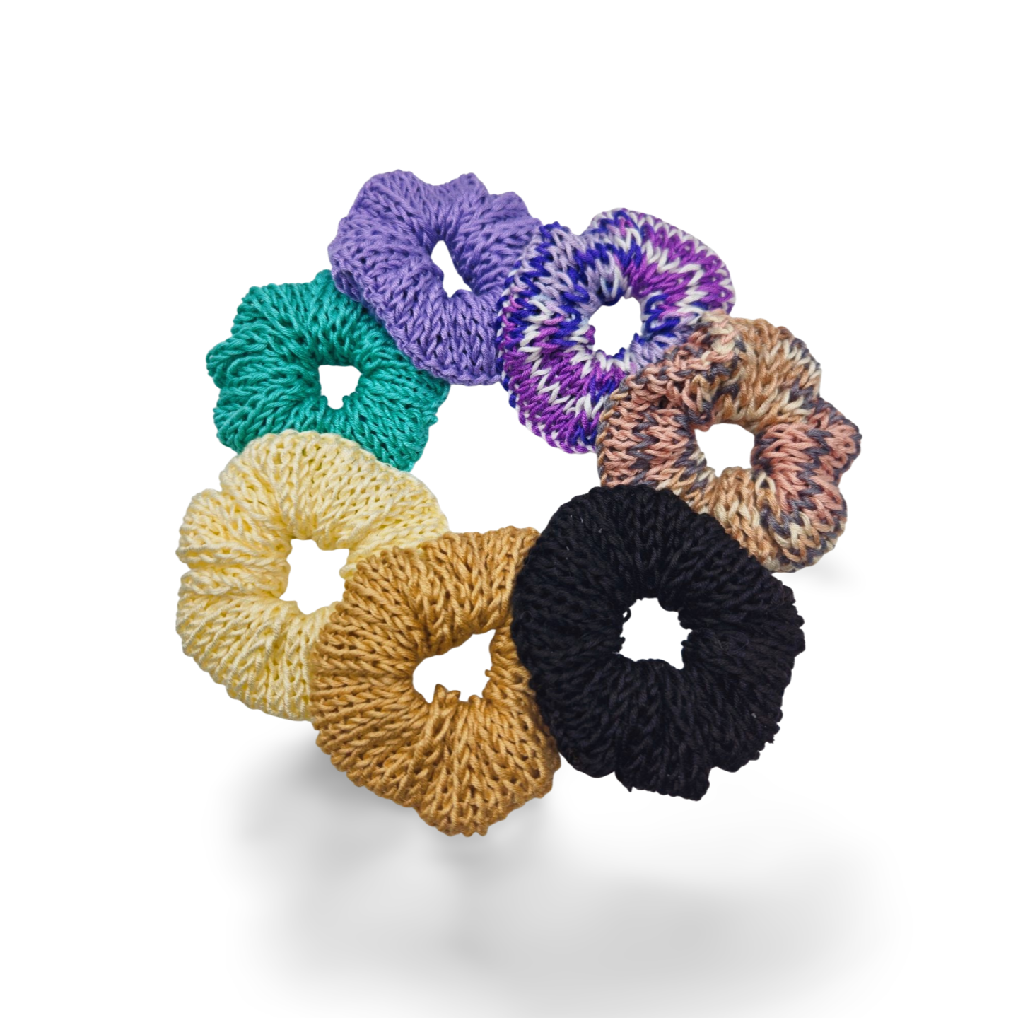 • handmade knitted scrunchies made with rayon from bamboo • super soft natural fiber • made with a seamless hair elastic on the inside so it won't break