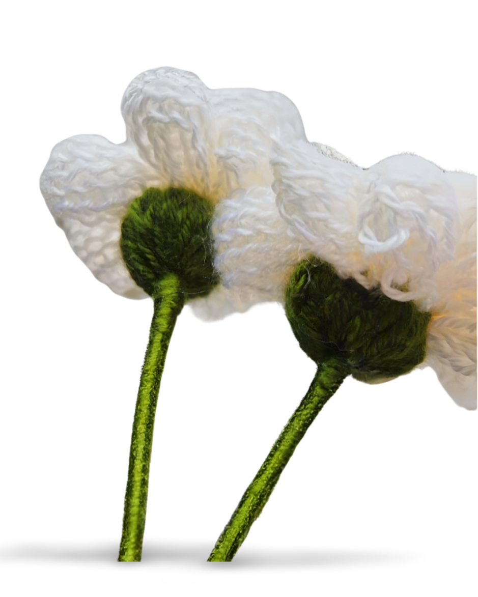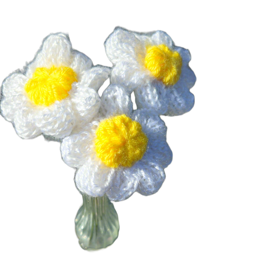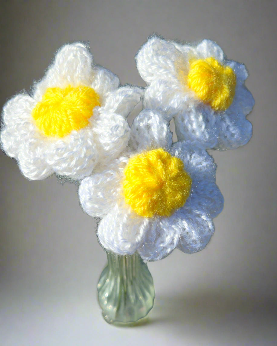 Handmade knitted Daisy flowers with a bendable metal wire 12-inch stem 🌼