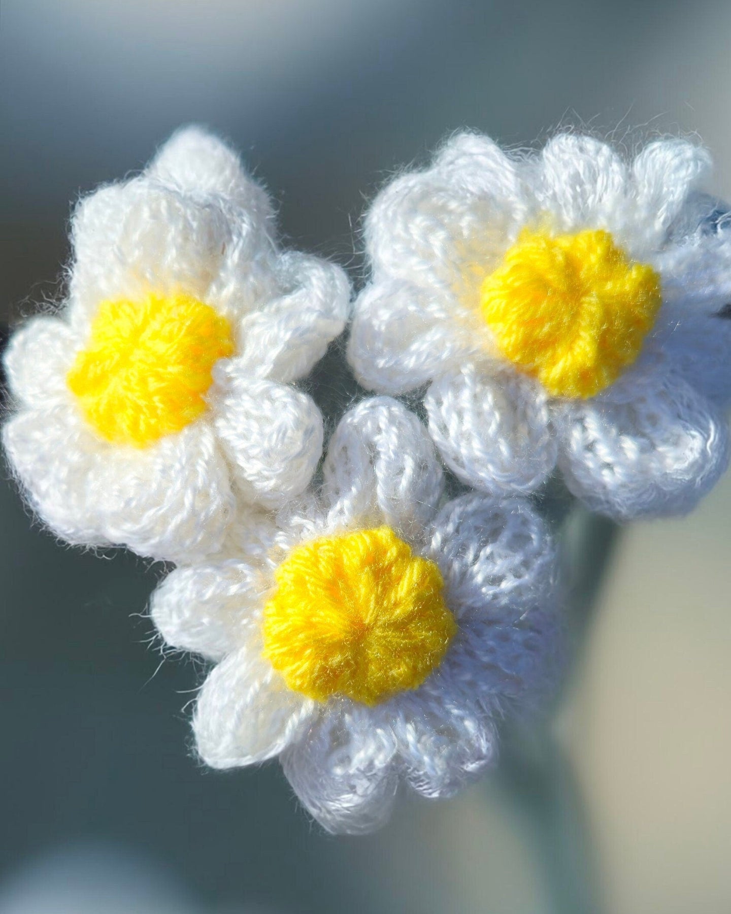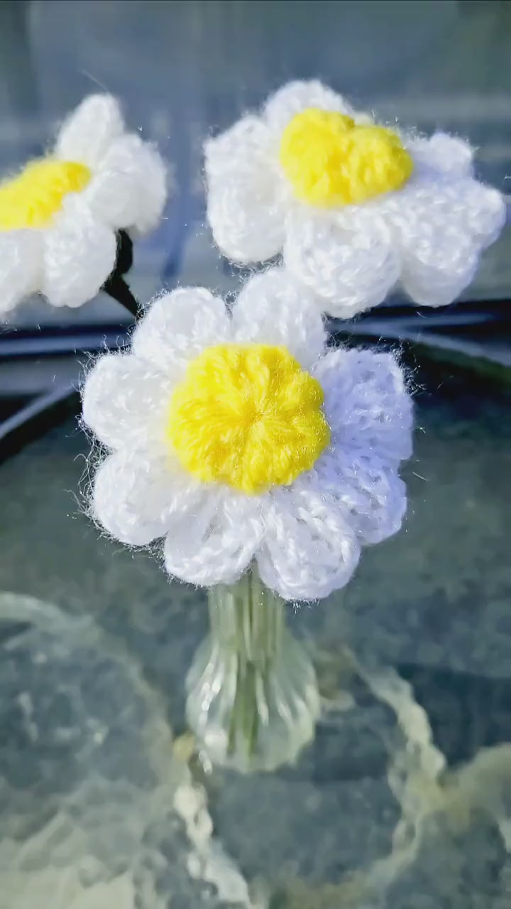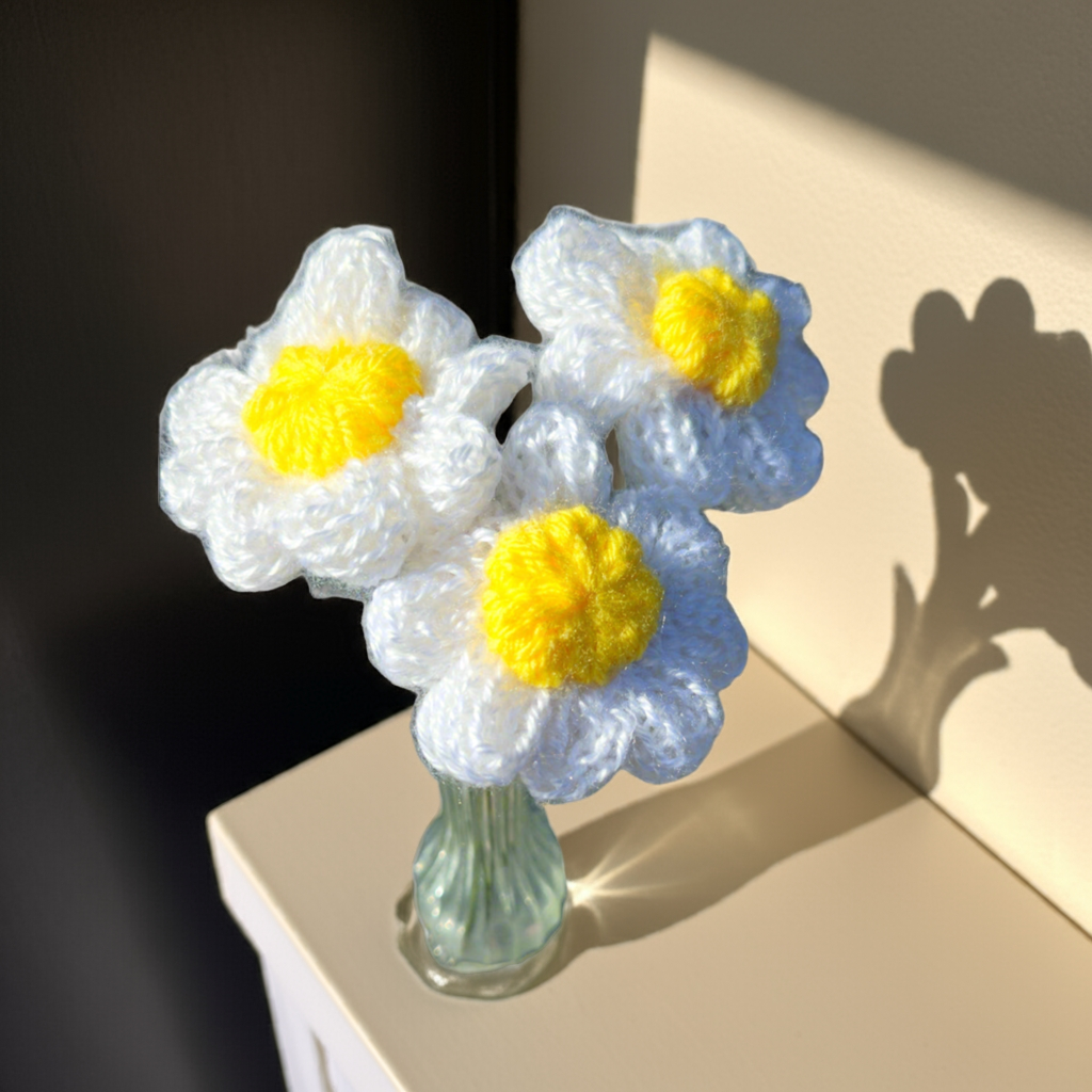 Handmade knitted Daisy flowers with a bendable metal wire 12-inch stem 🌼