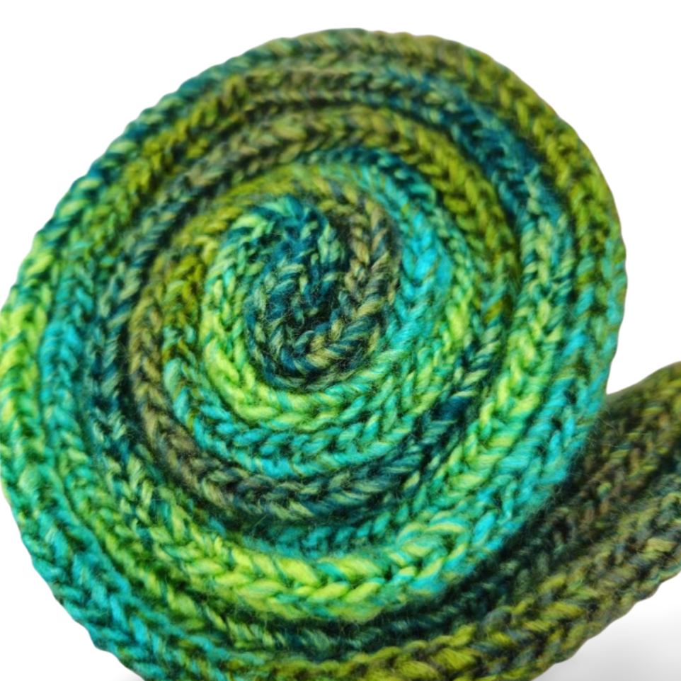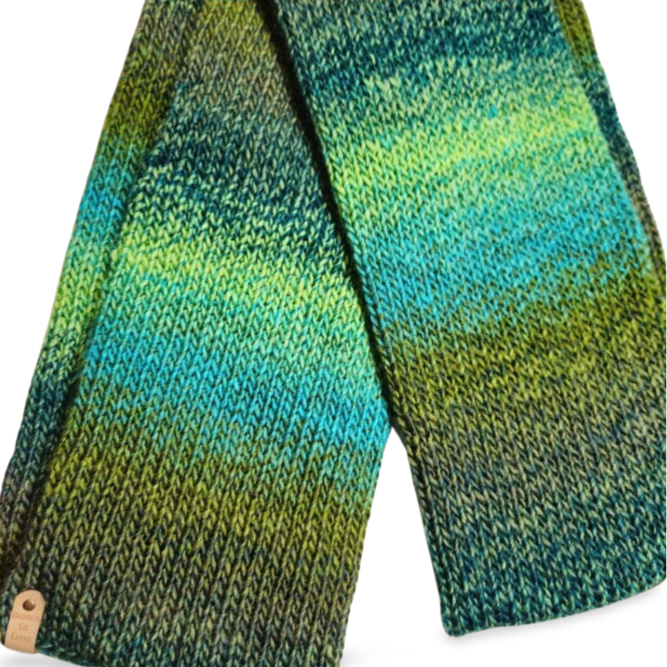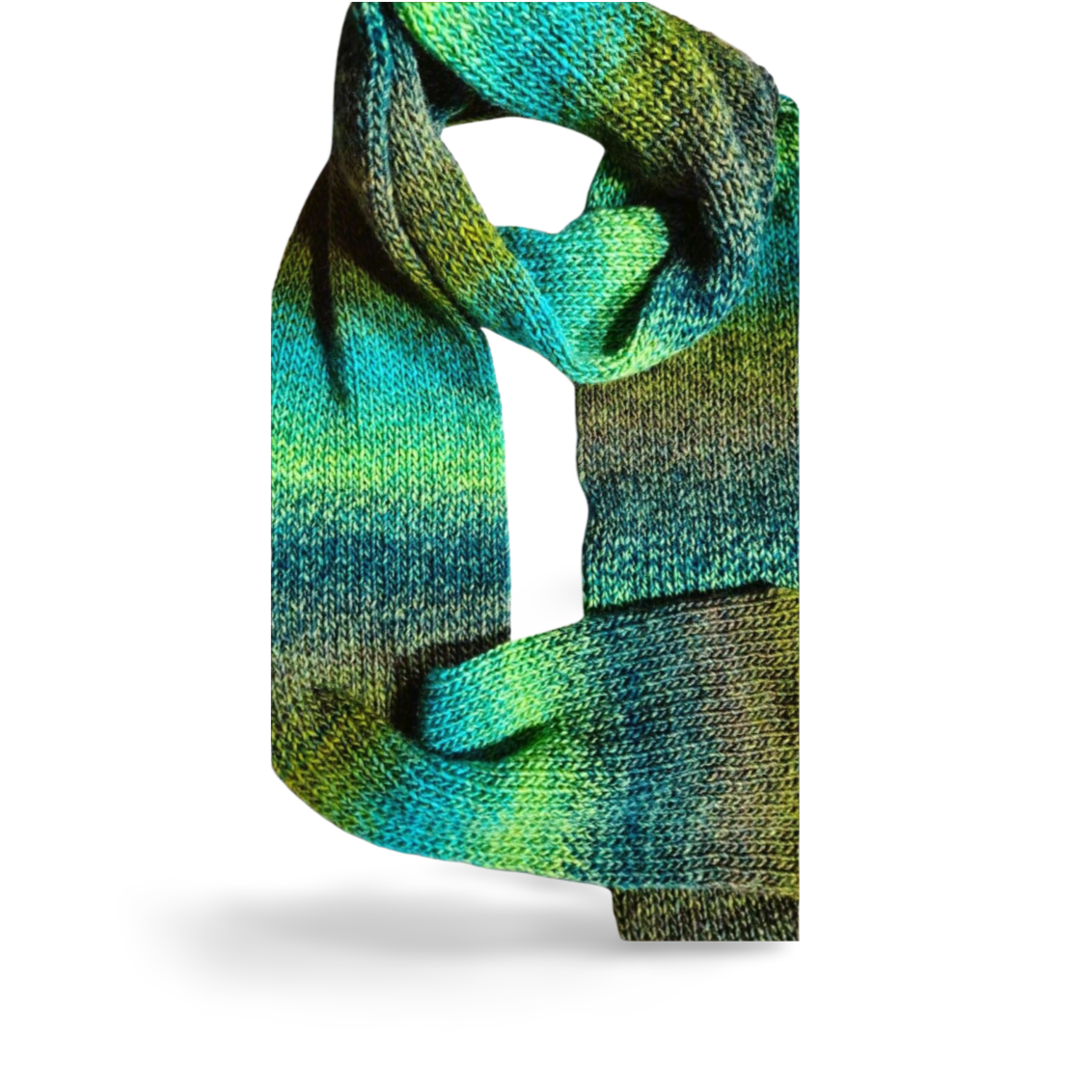 • handmade knitted scarf in brilliant shades of gradient greens (colour scheme varies slightly from photos due to the nature of the yarn)