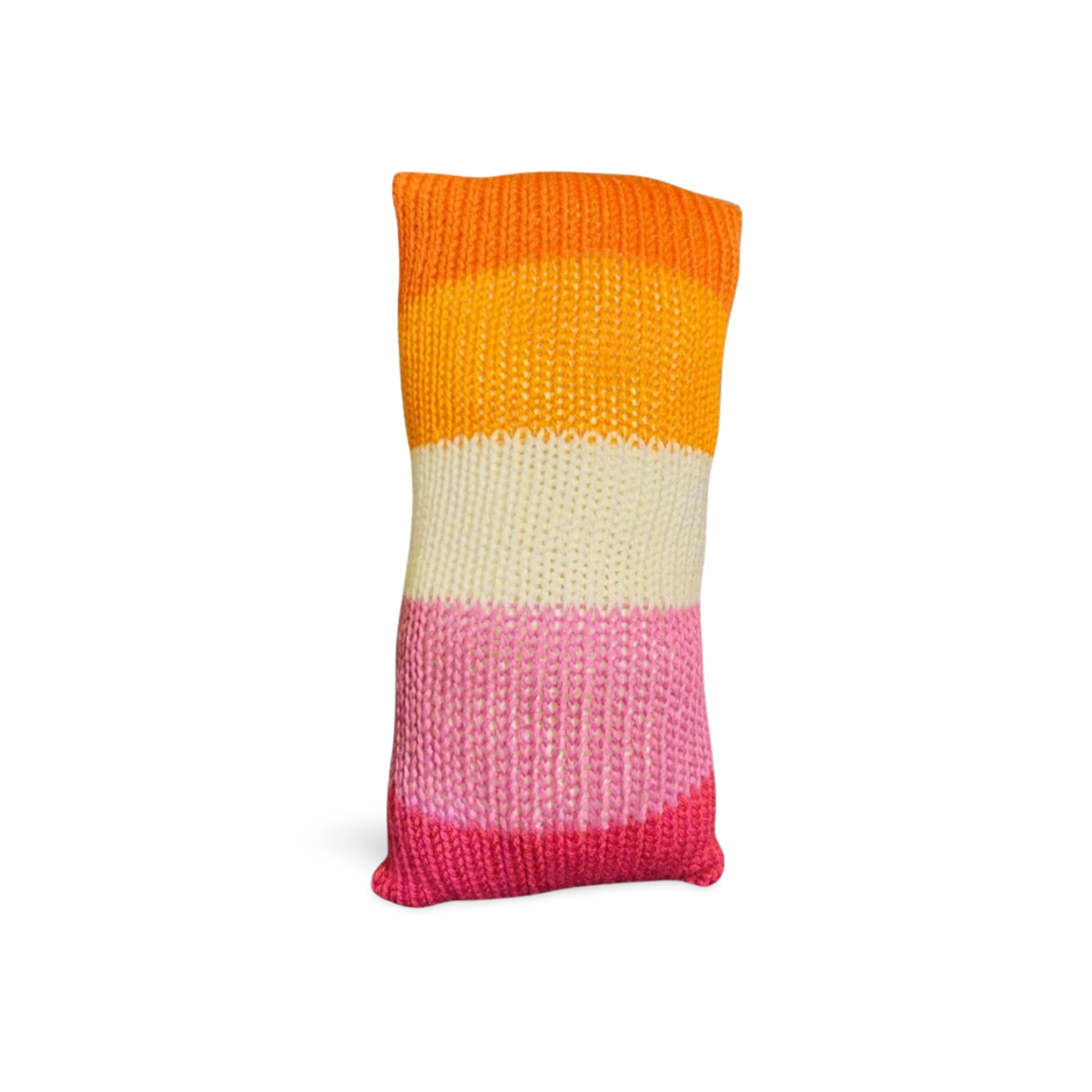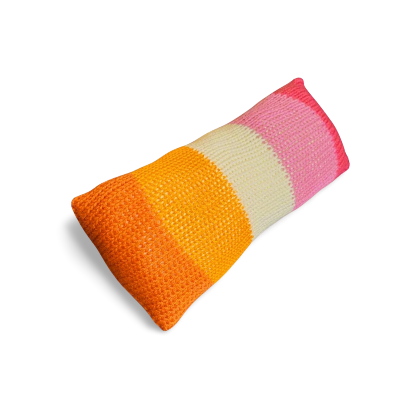• handmade knitted pillow in Lesbian pride flag-inspired colours • the outer shell of the pillow is double-layered for extra comfort • stuffed with a soft and fluffy polyester Polyfil • super soft to the touch • ideal for decoration, travel, back & neck, baby, or even pets • handmade with love ♡