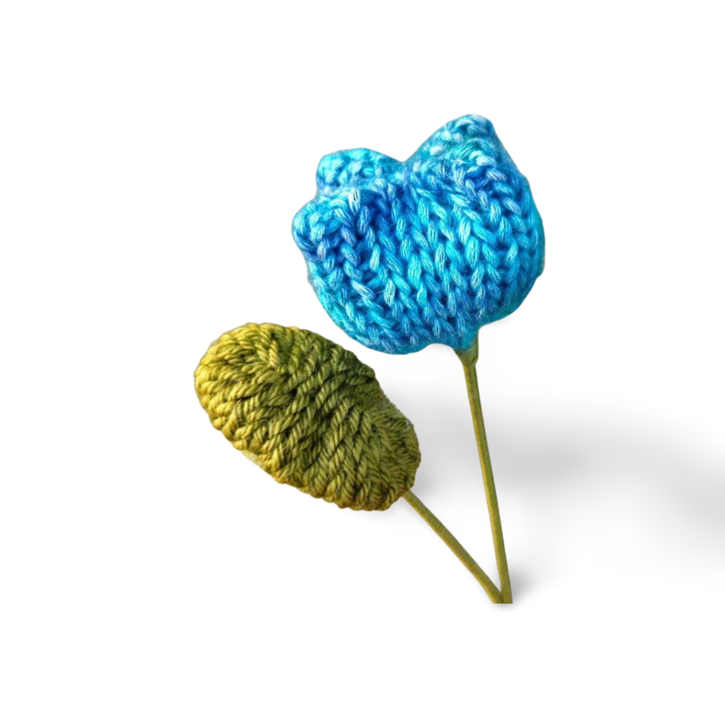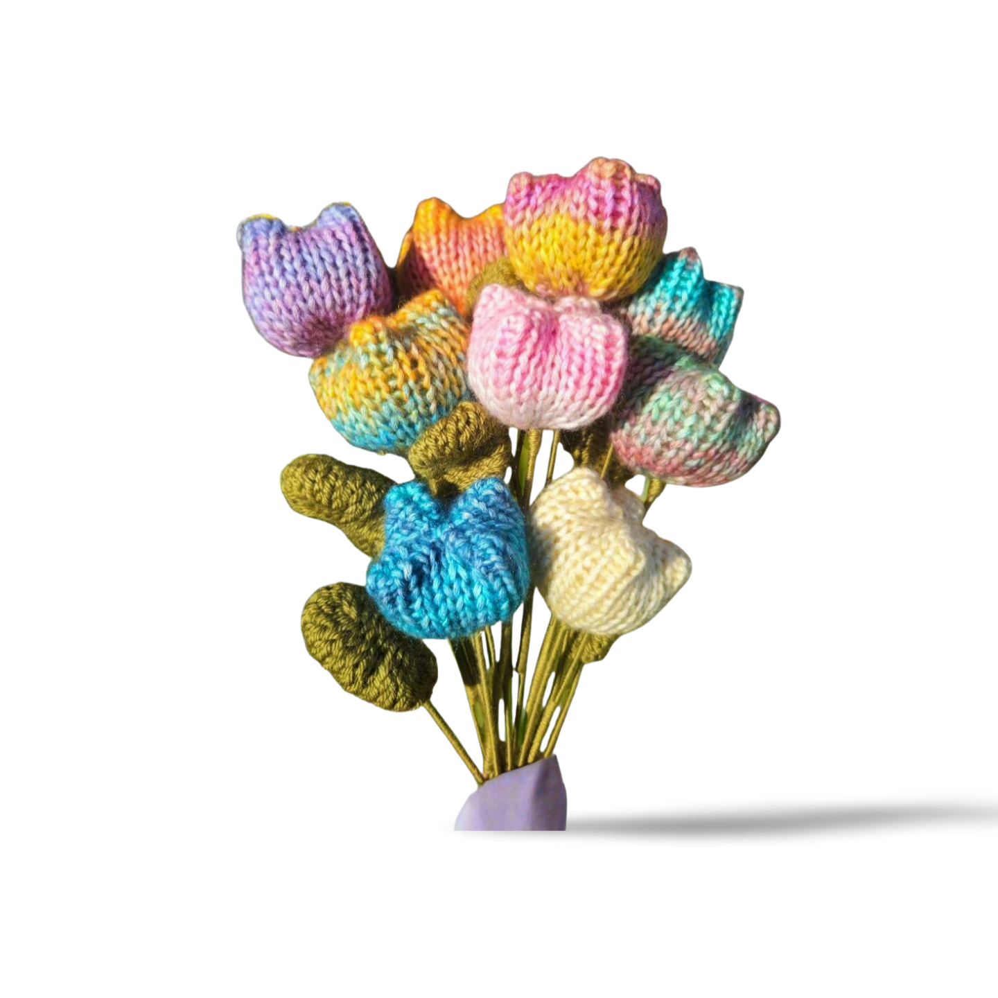 • handmade knitted Tulip forever flowers in beautiful gradient colour combinations and complete with a single leaf 🌷