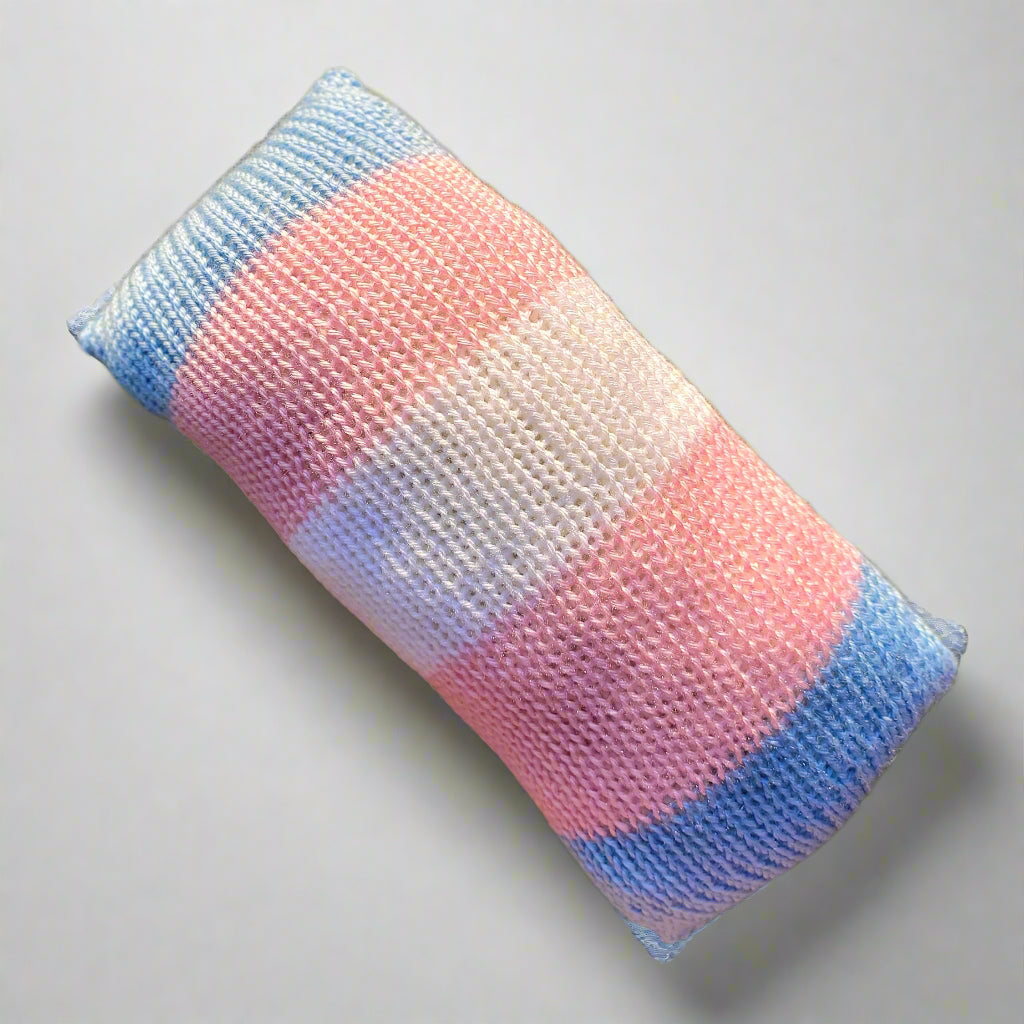 • handmade Transgendered pride flag-inspired throw pillow